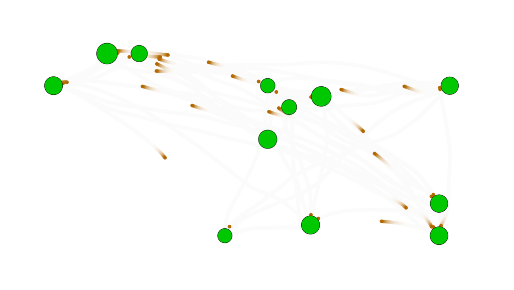 This is the current stage that I’m at. I added the vector field and changed the colors of the birds to brown without any stroke. The deviations in movement from the vector field were small at first but it was only after some time and by taking advantage of lowering the opacity of the background that I was able to notice the subtleties.