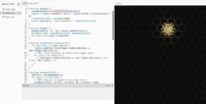 Setting up the basic p5.js canvas and draw the background pattern. I didn’t add physics yet, just using math to tile a grid of hexagons.