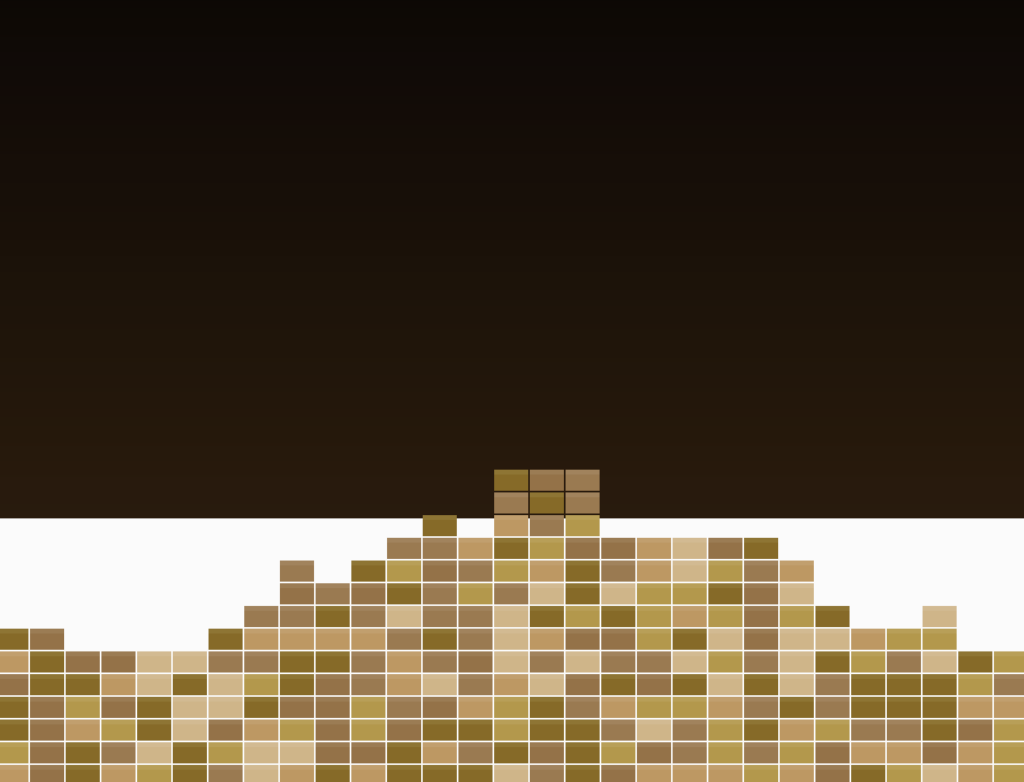For future work I want to add water. Fragments that collect at the bottom could be slowly submerged as a rising water level fills the valleys left behind by the erosion. I also want to track how many blocks have been destroyed and show it as a live counter so the viewer has a sense of scale over the life of the simulation.